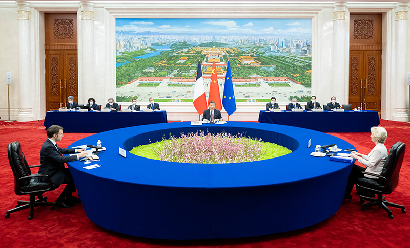 习近平同法国总统马克龙、欧盟委员会主席冯德莱恩举行中法欧三方会晤