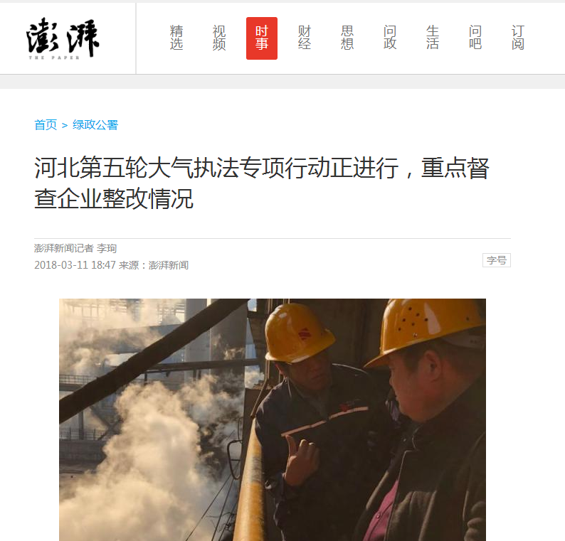 河北省环保厅相关负责人对澎湃新闻表示,在本轮行动中,各执法组持续加大对排污企业污染防治设施缺失或不正常运行、超标排放、无环保手续、未批先建、无证排污等各类突出环境违法行为的查处和督促整改力度,对检查发现的环境违法行为均责令立即整改,并责成当地政府或环保部门负责督促整改落实到位。