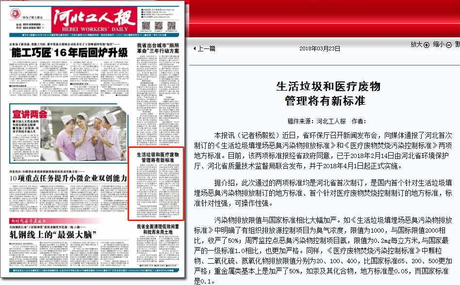 河北工人报:生活垃圾和医疗废物管理将有新标准