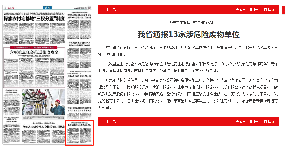 13家不达标的单位是:邯郸市赵都实业公司铸铁金属件加工厂、辛集市北达皮业有限公司、河北赛赛尔俊峰物探装备有限公司、展拜邸(保定)墙纸有限公司、保定市格瑞机械有限公司、风帆有限公司徐水高新电源公司、旗帜婴儿乳品股份有限公司、中国石油天然气股份有限公司管道压缩机组维检修中心、河北渤海煤焦化有限公司、兴龙轮毂有限公司、唐山佳跃化工有限公司、唐山市南堡开发区宇洋达污油水处理有限公司、承德市新新机械制造有限公司。