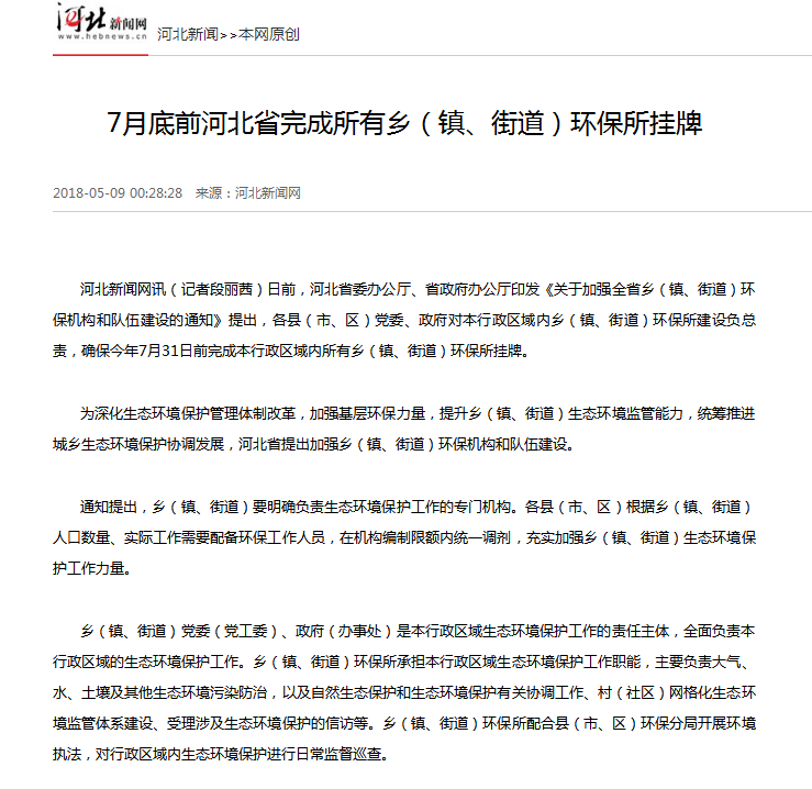 为深化91直播保护管理体制改革,加强基层环保力量,提升乡(镇、街道)91直播监管能力,统筹推进城乡91直播保护协调发展,河北省提出加强乡(镇、街道)环保机构和队伍建设。