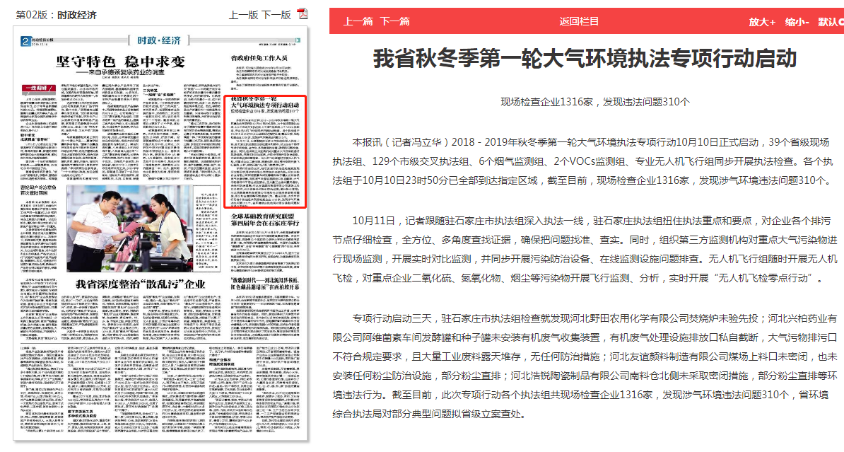 河北经济日报:我省秋冬季第一轮大气环境执法专项行动启动