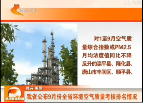 河北卫视《河北新闻联播》:我省公布9月份全省环境空气质量考核排名情况