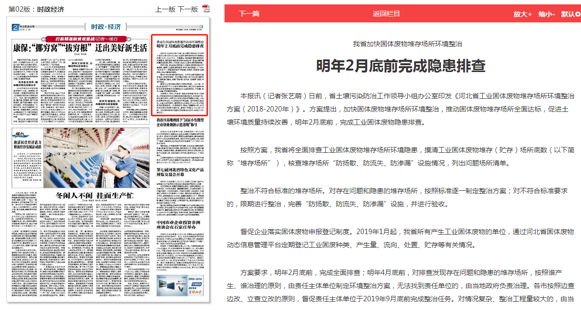 河北经济日报:我省加快固体废物堆存场所环境整治 明年2月底前完成隐患排查
