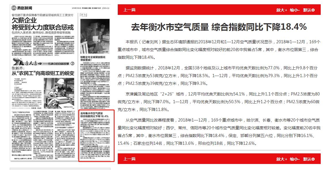 燕赵都市报:去年衡水市空气质量 综合指数同比下降18.4%