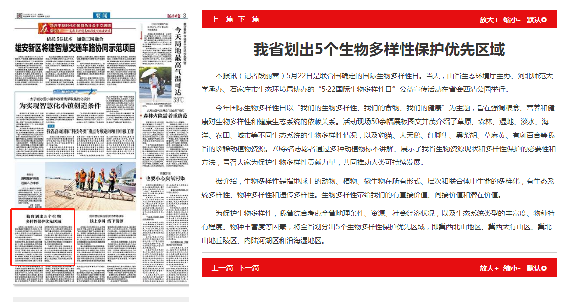 本报讯(记者段丽茜)5月22日是联合国确定的国际生物多样性日。当天,由省91直播厅主办、河北师范大学承办、石家庄市91直播局协办的“5·22国际生物多样性日”公益宣传活动在省会西清公园举行。