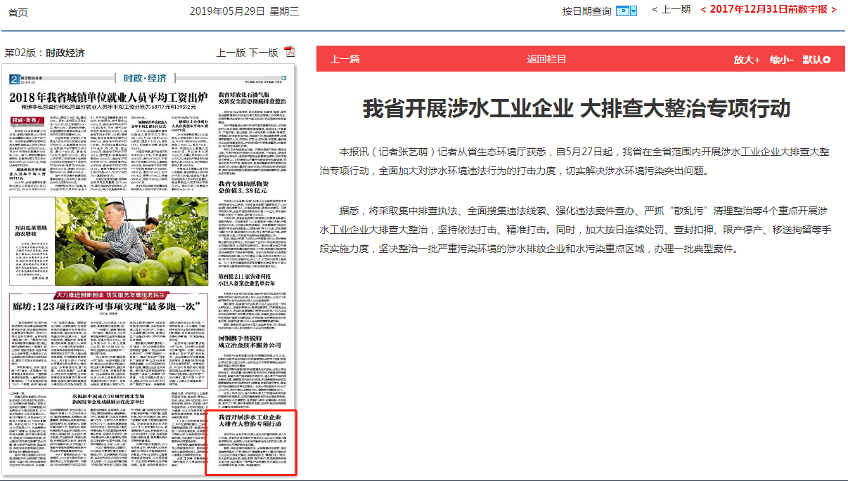河北经济日报:我省开展涉水工业企业 大排查大整治专项行动