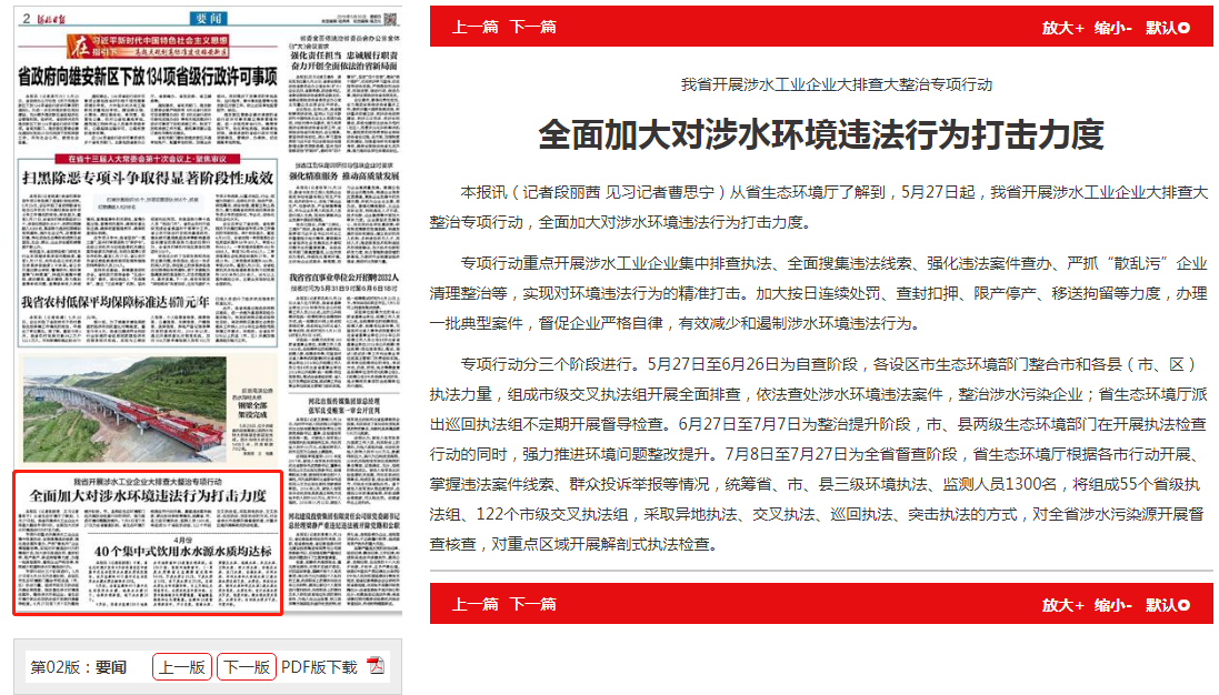 本报讯(记者段丽茜 见习记者曹思宁)从省91直播厅了解到,5月27日起,我省开展涉水工业企业大排查大整治专项行动,全面加大对涉水环境违法行为打击力度。