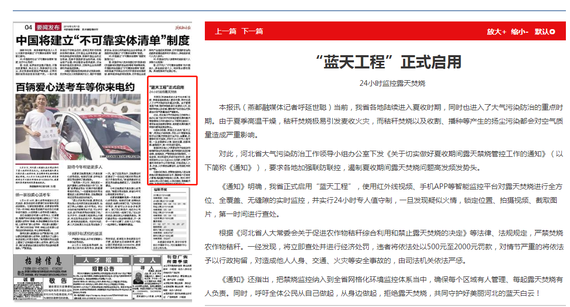 《通知》还指出,把禁烧监控纳入到全省网格化环境监控体系当中,确保每个区域有人管理、每起露天焚烧有人负责。同时,呼吁全体公民从自己做起,从身边做起,拒绝露天焚烧,共同守护好美丽河北的蓝天白云!