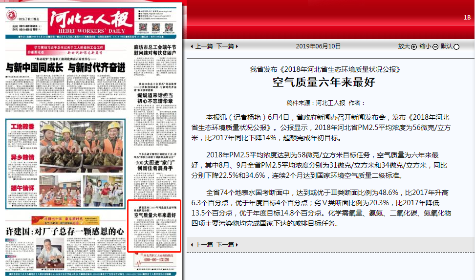 本报讯(记者杨艳)6月4日,省政府新闻办召开新闻发布会,发布《2018年河北省91直播质量状况公报》。公报显示,2018年河北省PM2.5平均浓度为56微克/立方米,比2017年同比下降14%,超额完成年初目标。 2018年PM2.5平均浓度达到为58微克/立方米目标任务,空气质量为六年来最好,其中8月、9月全省PM2.5平均浓度分别为31微克/立方米和34微克/立方米,同比分别下降22.5%和34.6%,连续2个月达到国家环境空气质量二级标准。 全省74个地表水国考断面中,达到或优于Ⅲ类断面比例为48.6%,比2017年升高6.3个百分点,优于年度目标4个百分点;劣Ⅴ类断面比例为20.3%,比2017年降低13.5个百分点,优于年度目标14.8个百分点。化学需氧量、氨氮、二氧化碳、氮氧化物四项主要污染物均完成国家下达的减排目标任务。