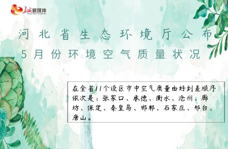 长城网:5月份河北省环境空气质量成绩单出炉 张家口空气质量最好 改善程度最大