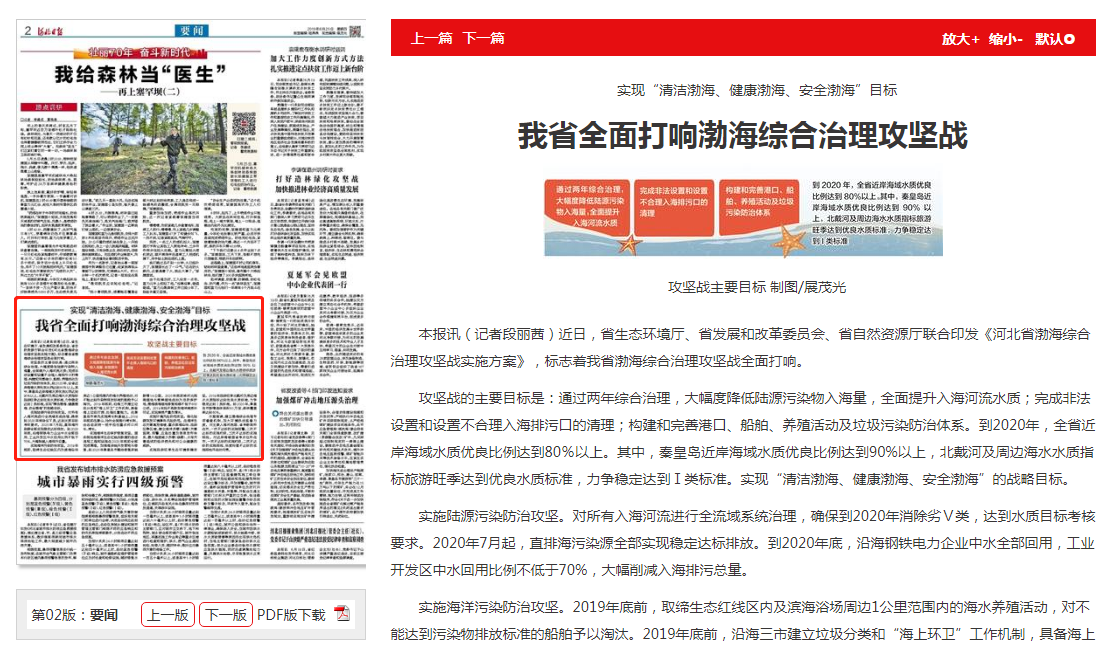 本报讯(记者段丽茜)近日,省91直播厅、省发展和改革委员会、省自然资源厅联合印发《河北省渤海综合治理攻坚战实施方案》,标志着我省渤海综合治理攻坚战全面打响。