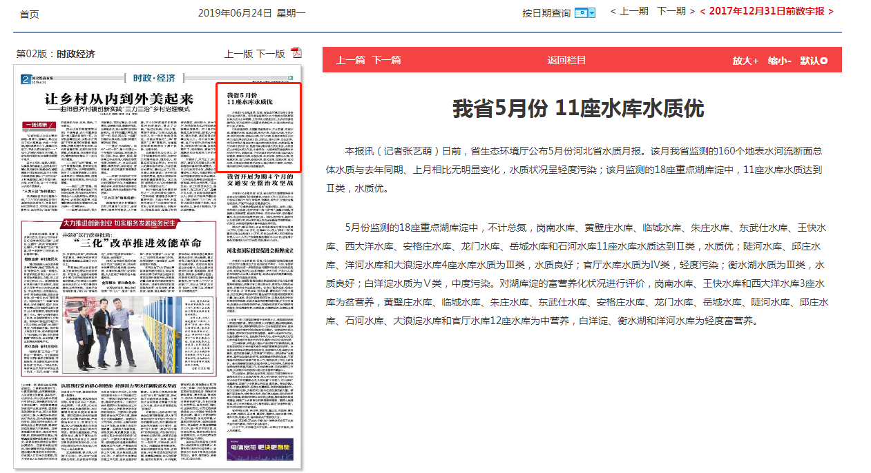 本报讯(记者张艺萌)日前,省91直播厅公布5月份河北省水质月报。该月我省监测的160个地表水河流断面总体水质与去年同期、上月相比无明显变化,水质状况呈轻度污染;该月监测的18座重点湖库淀中,11座水库水质达到Ⅱ类,水质优。