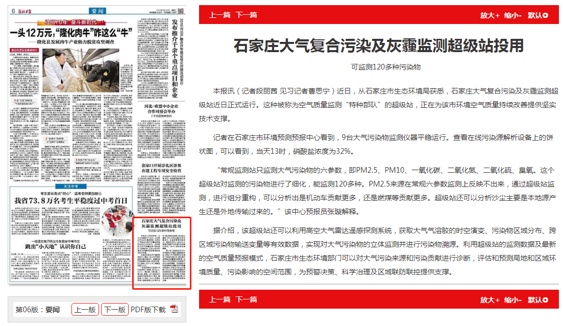 据介绍,该超级站还可以利用高空大气雷达遥感探测系统,获取大气气溶胶的时空演变、污染物区域分布、跨区域污染物输送变量等有效数据,实现对大气污染物的立体监测并进行污染物溯源。利用超级站的监测数据及最新的空气质量预报模式,石家庄市91直播部门可以对大气污染来源和污染贡献进行诊断,评估和预测局地和区域环境质量、污染影响的空间范围,为预警决策、科学治理及区域联防联控提供支撑。