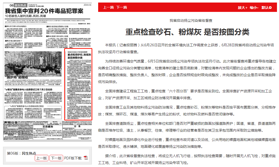 为持续改善环境空气质量,6月5日我省启动扬尘污染专项执法攻坚月行动。此次省级督查将重点督导各地建立完善全口径扬尘污染分类管控清单,检查清单的建立是否底数清,对管控清单内发现问题的企业提出的整改方案,是否明确整改措施、整改负责人、整改时限,企业是否按照规定时限完成整改,未完成整改的企业是否采取措施降低污染排放。