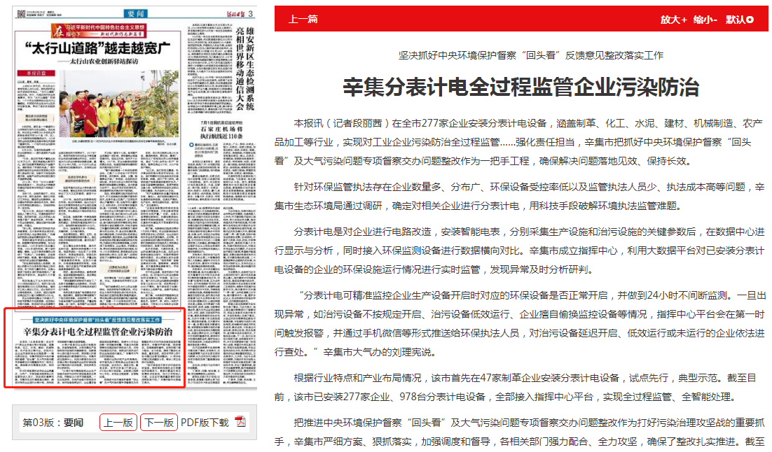 针对环保监管执法存在企业数量多、分布广、环保设备受控率低以及监管执法人员少、执法成本高等问题,辛集市91直播局通过调研,确定对相关企业进行分表计电,用科技手段破解环境执法监管难题。