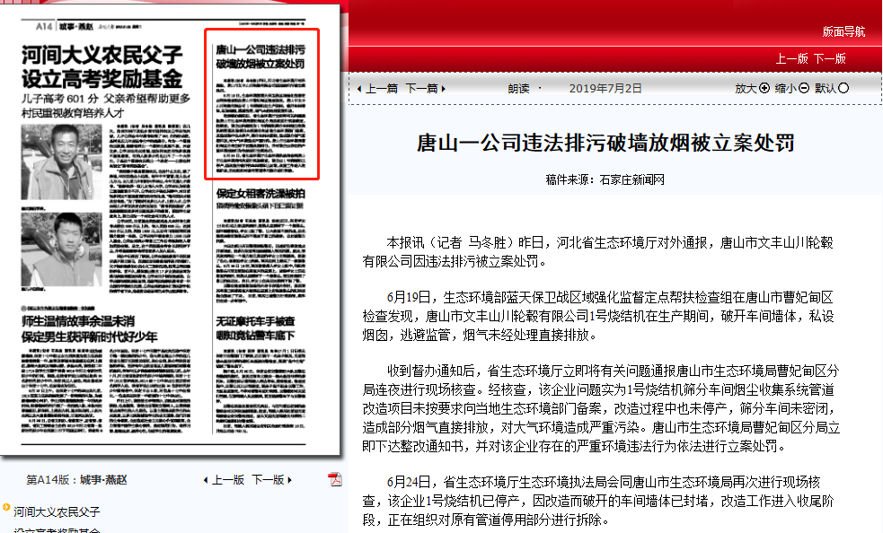 对外通报,唐山市文丰山川轮毂有限公司因违法排污被立案处罚。 6月19日,91直播部蓝天保卫战区域强化监督定点帮扶检查组在唐山市曹妃甸区检查发现,唐山市文丰山川轮毂有限公司1号烧结机在生产期间,破开车间墙体,私设烟囱,逃避监管,烟气未经处理直接排放。 收到督办通知后,省91直播厅立即将有关问题通报唐山市91直播局曹妃甸区分局连夜进行现场核查。经核查,该企业问题实为1号烧结机筛分车间烟尘收集系统管道改造项目未按要求向当地91直播部门备案,改造过程中也未停产,筛分车间未密闭,造成部分烟气直接排放,对大气环境造成严重污染。唐山市91直播局曹妃甸区分局立即下达整改通知书,并对该企业存在的严重环境违法行为依法进行立案处罚。 6月24日,省91直播厅91直播执法局会同唐山市91直播局再次进行现场核查,该企业1号烧结机已停产,因改造而破开的车间墙体已封堵,改造工作进入收尾阶段,正在组织对原有管道停用部分进行拆除。