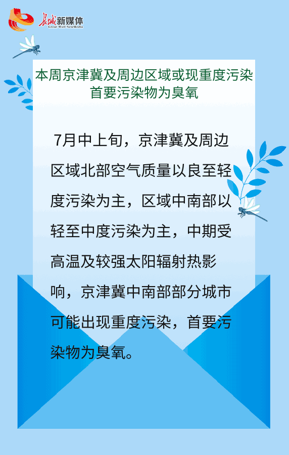 据悉,7月中上旬,京津冀及周边区域北部空气质量以良至轻度污染为主,区域中南部以轻至中度污染为主,中期受高温及较强太阳辐射热影响,京津冀中南部部分城市可能出现重度污染,首要污染物为臭氧。