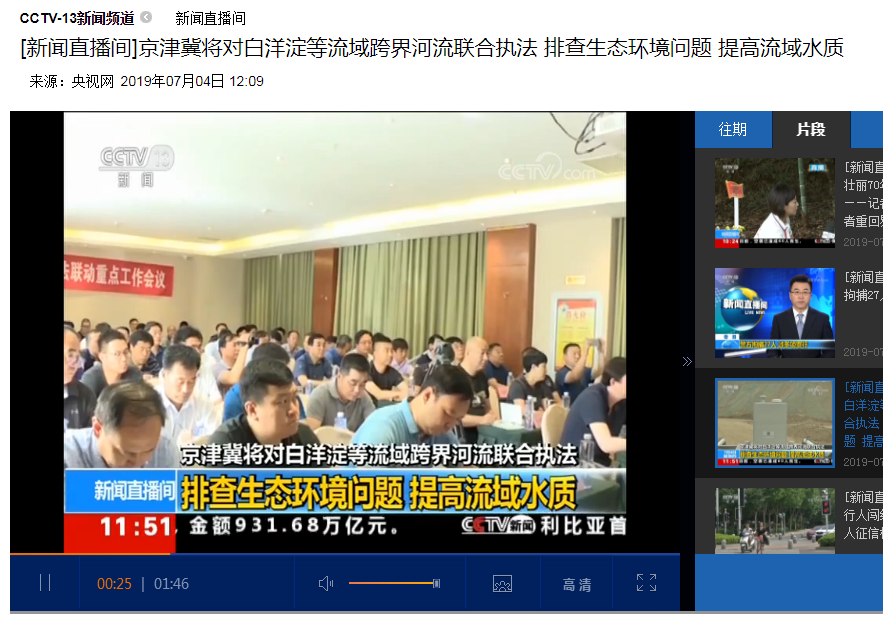 CCTV-13[新闻直播间]:京津冀将对白洋淀等流域跨界河流联合执法 排查91直播问题 提高流域水质