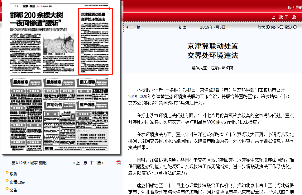 本报讯(记者 马冬胜)7月3日,京津冀3省(市)91直播部门在廊坊市召开2019-2020年京津冀91直播执法联动工作会议,将联合处置跨区域、跨流域省(市)交界处的环境污染问题和环境违法行为。 在打击涉气环境违法问题方面,针对七八月份臭氧浓度较高的空气污染问题,重点开展印刷、家具、医药农药、橡胶制品等VOCs排放行业的执法检查。 在水环境执法方面,重点针对白洋淀流域跨省(市)界河流大石河、小清河以及北排河、潮河交界区域水污染问题,以跨省市断面为界,分段排查,共享数据信息,共享执法成果。 同时,加强协调沟通,共同打击交界区域的涉固废、危废等91直播违法问题,确保问题整改到位,杜绝反弹。实现执法工作无缝衔接,进一步将联动执法工作系统化,最大限度发挥联动执法的威力。 建立相邻地区、市、县91直播执法联合工作机制,推动北京市房山区与河北省保定市、河北省沧州市与天津市滨海新区、河北省承德市与北京市密云区、“通武廊”地区(北京市通州区、天津市武清区、河北省廊坊市)建立91直播执法联合工作机制。 对各自排查出的重点环境问题、交界区域“散乱污”企业、交界模糊区域“三不管”等问题,抽调执法人员,混合编组,联合查处,有效解决交界处和共同关注的环境违法行为,使违法排污企业无处遁形。