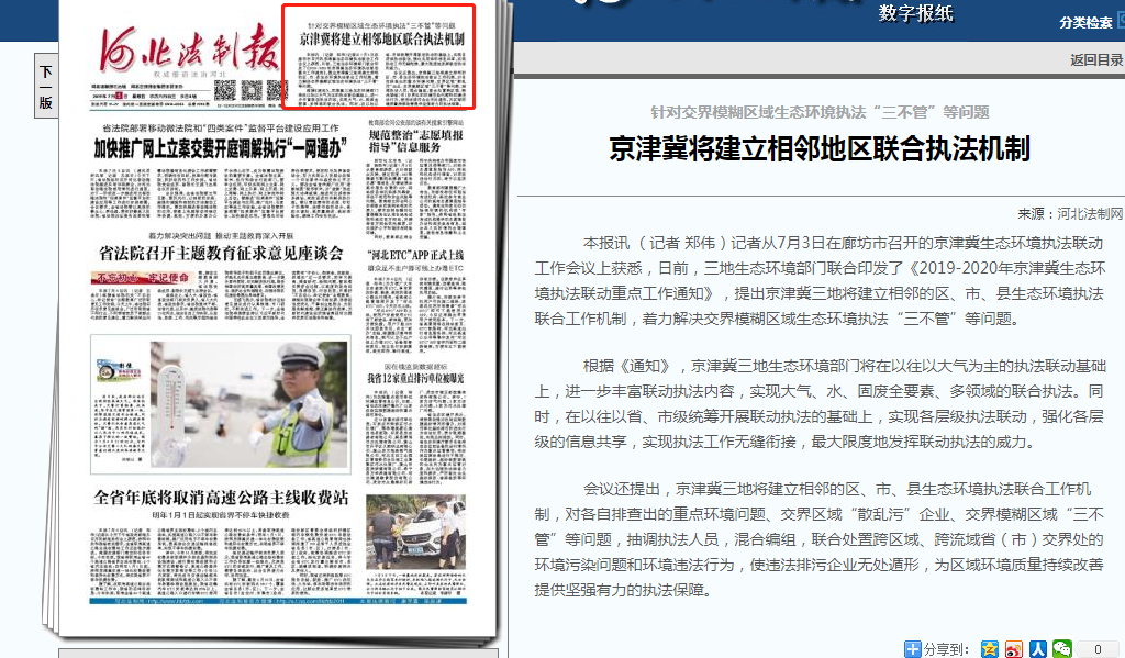 根据《通知》,京津冀三地91直播部门将在以往以大气为主的执法联动基础上,进一步丰富联动执法内容,实现大气、水、固废全要素、多领域的联合执法。同时,在以往以省、市级统筹开展联动执法的基础上,实现各层级执法联动,强化各层级的信息共享,实现执法工作无缝衔接,最大限度地发挥联动执法的威力。