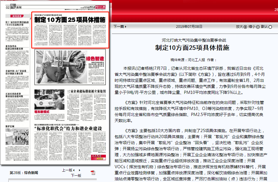 获悉,我省近日出台《河北省大气污染集中整治夏季会战方案》(以下简称《方案》),旨在通过6月到9月,4个月时间持续攻坚重点区域、重点领域、重点问题、重点工作,有效遏制全省1月、2月出现的大气环境质量不降反升态势,持续改善环境空气质量,力争到9月份各市每月降尘量小于9吨/月·平方公里,城市降尘量、PM10平均浓度同比下降5%以上。 《方案》针对河北全省夏季大气污染特征和当前存在的突出问题,采取针对性管控手段和有效措施,有效降低大气环境中PM10、O3等污染物浓度,力争实现7~9月份每月河北全省和各市空气质量综合指数、PM2.5平均浓度好于去年,切实提高优良天数比率。 《方案》主要包括10大方面内容,共制定了25项具体措施。在开展专项行动上,包括八大专项整治行动共20项具体措施,主要有:开展“散乱污”企业和集群综合整治专项行动,集中开展“散乱污”企业整治“回头看”,坚决杜绝“散乱污”企业反弹;开展扬尘污染综合整治专项行动,严格管控建筑施工扬尘污染,强化施工现场管理,大力加强城乡裸地面源污染整治;开展工业企业清洁化整治专项行动,加快推进产能压减和退城搬迁,实施重点行业超低排放改造,推动工业企业深度治理;开展VOCs(挥发性有机物)综合整治专项行动,推进涉挥发性有机物原辅材料替代,开展重点行业泄露检测修复,加强重点排放源深度治理,深化餐饮油烟综合治理;开展黑加油站点清零整治专项行动,全区域巡查排查,严厉打击黑加油站(点)违法行为;开展散煤整治和清洁替代攻坚专项行动,稳步推进清洁取暖,严厉打击销售和使用劣质散煤行为,加快燃煤锅炉淘汰、超低排放改造和燃气锅炉低氮燃烧改造;开展秸秆垃圾露天焚烧管控攻坚行动,强化宣传引导,严厉打击露天焚烧;开展机动车和非道路移动机械污染防治行动,常态化开展路查路检,划定并公布禁止使用高排放非道路移动机械区域,禁止使用超标排放工程机械。 《方案》突出冬病夏治,加快推进实施清洁取暖、散煤整治和燃煤燃气锅炉综合治理,加快推进产能压减和工业企业退城搬迁,形成有效减排潜力;突出专项整治,重点实施“散乱污”整治、扬尘管控、工业企业整治、挥发性有机物(VOCs)治理、黑加油站治理、散煤整治和清洁替代、秸秆和垃圾露天焚烧、机动车污染防治等八大专项整治行动。 根据专家对会战措施的技术评估测算,《方案》实施后,在完全落实提前完成10大方面25项措施的情况下,河北全省预计可实现NOx(氮氧化物)、SO2(二氧化硫)、VOCs(挥发性有机物)、一次PM2.5分别减排7.50 万吨、12.31万吨、6.93万吨和11.38万吨,可使PM2.5年均浓度下降4.46微克/立方米,对全年空气质量改善目标的完成起到有力促进作用。