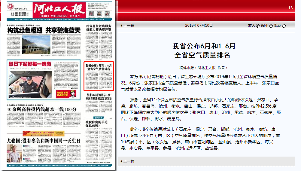 本报讯(记者杨艳)近日,省91直播厅公布2019年1-6月全省环境空气质量情况。6月份,张家口市空气质量最佳,秦皇岛市同比改善幅度最大。上半年,张家口空气质量以及改善幅度均居首位。 据悉,全省11个设区市按空气质量综合指数由小到大的顺序依次是:张家口、承德、廊坊、秦皇岛、沧州、衡水、唐山、保定、邯郸、石家庄、邢台。按PM2.5浓度同比下降幅度由大到小的顺序依次是:张家口、唐山、沧州、承德、廊坊、石家庄、邢台、保定、邯郸、衡水、秦皇岛。 此外,8个传输通道城市(石家庄、保定、邢台、邯郸、沧州、衡水、廊坊、唐山)所属134个县(市、区)空气质量排名,按空气质量综合指数从小到大的顺序,前10名县(市、区)依次是:景县、唐山市曹妃甸区、盐山县、沧州市新华区、海兴县、南皮县、阜平县、魏县、沧州市运河区、故城县。