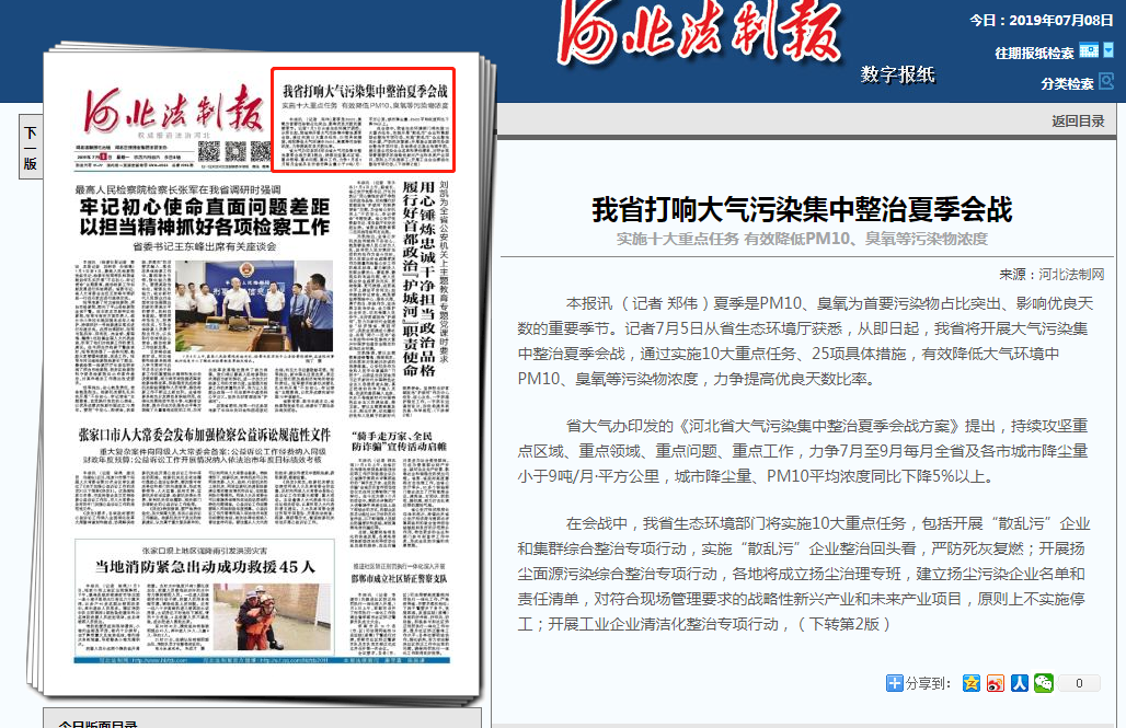 省大气办印发的《河北省大气污染集中整治夏季会战方案》提出,持续攻坚重点区域、重点领域、重点问题、重点工作,力争7月至9月每月全省及各市城市降尘量小于9吨/月·平方公里,城市降尘量、PM10平均浓度同比下降5%以上。