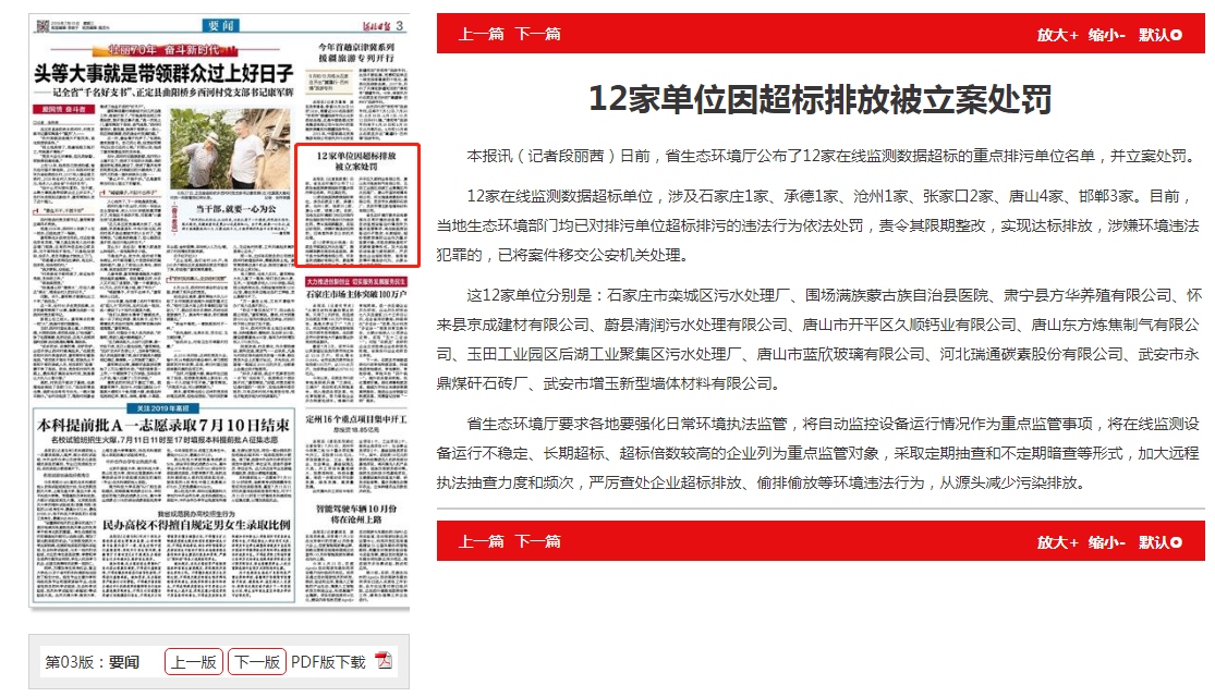 12家在线监测数据超标单位,涉及石家庄1家、承德1家、沧州1家、张家口2家、唐山4家、邯郸3家。目前,当地91直播部门均已对排污单位超标排污的违法行为依法处罚,责令其限期整改,实现达标排放,涉嫌环境违法犯罪的,已将案件移交公安机关处理。