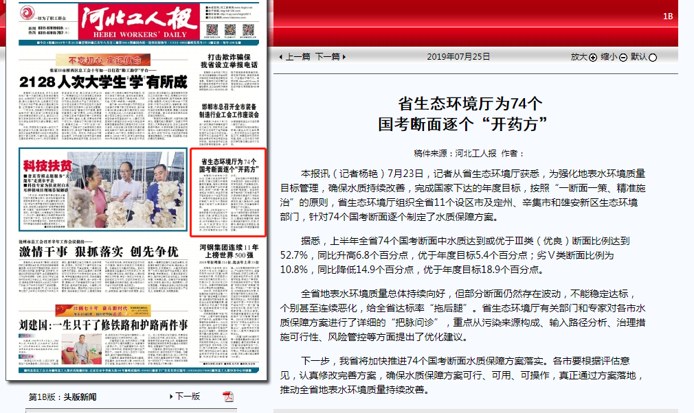 本报讯(记者杨艳)7月23日,记者从省91直播厅获悉,为强化地表水环境质量目标管理,确保水质持续改善,完成国家下达的年度目标,按照“一断面一策、精准施治”的原则,省91直播厅组织全省11个设区市及定州、辛集市和雄安新区91直播部门,针对74个国考断面逐个制定了水质保障方案。