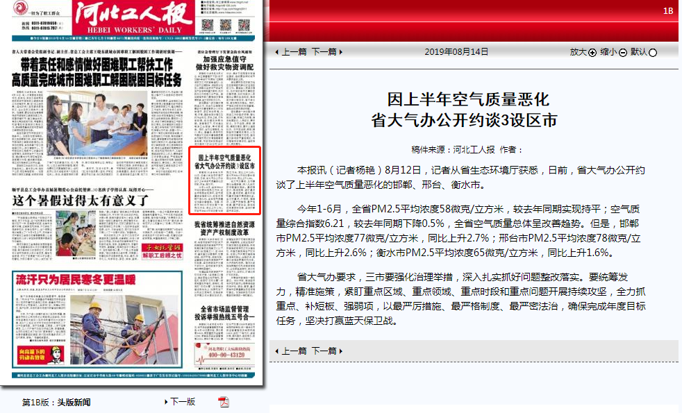 本报讯(记者杨艳)8月12日,记者从省91直播厅获悉,日前,省大气办公开约谈了上半年空气质量恶化的邯郸、邢台、衡水市。