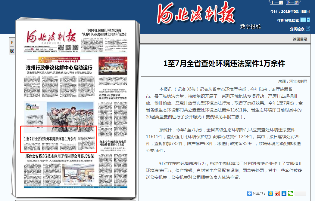 本报讯 (记者 郑伟)记者从省91直播厅获悉,今年以来,该厅统筹省、市、县三级执法力量,持续组织开展了一系列环境执法专项行动,严厉打击超标排放、偷排偷放、恶意排放等典型环境违法行为,取得了良好效果。今年1至7月份,全省各级91直播部门共立案查处环境违法案件11611件。省91直播厅日前对其中的20起典型案例进行了公开曝光(案例详见本报二版)。
