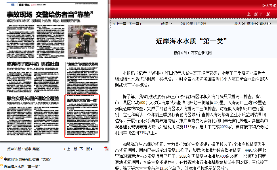 据了解,我省积极组织沿海三市对沿渤海区域和入海河流开展排污口排查,省、市、县区出动600余人次以海岸线为基准向陆地一侧延伸2公里,入海河口上溯5公里逐河段逐岸线踏查,完成了沿渤海区域入海排污口三级排查,对疑似入海排污口进行鉴别、定性和确认。今年前三季度我省渤海区域8个直排入海污染源企业水质监测结果均达标。开展沿河水系畜禽养殖清理,推广畜禽粪污资源化利用与无害化处理。秦皇岛市配套建设规模养殖场粪污处理利用设施1135家,唐山市完成2092家,畜禽废弃物资源化利用率均达到73%以上。