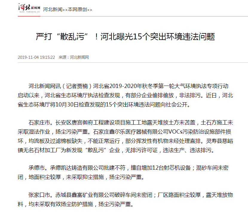 河北新闻网:严打“散乱污”!河北曝光15个突出环境违法问题