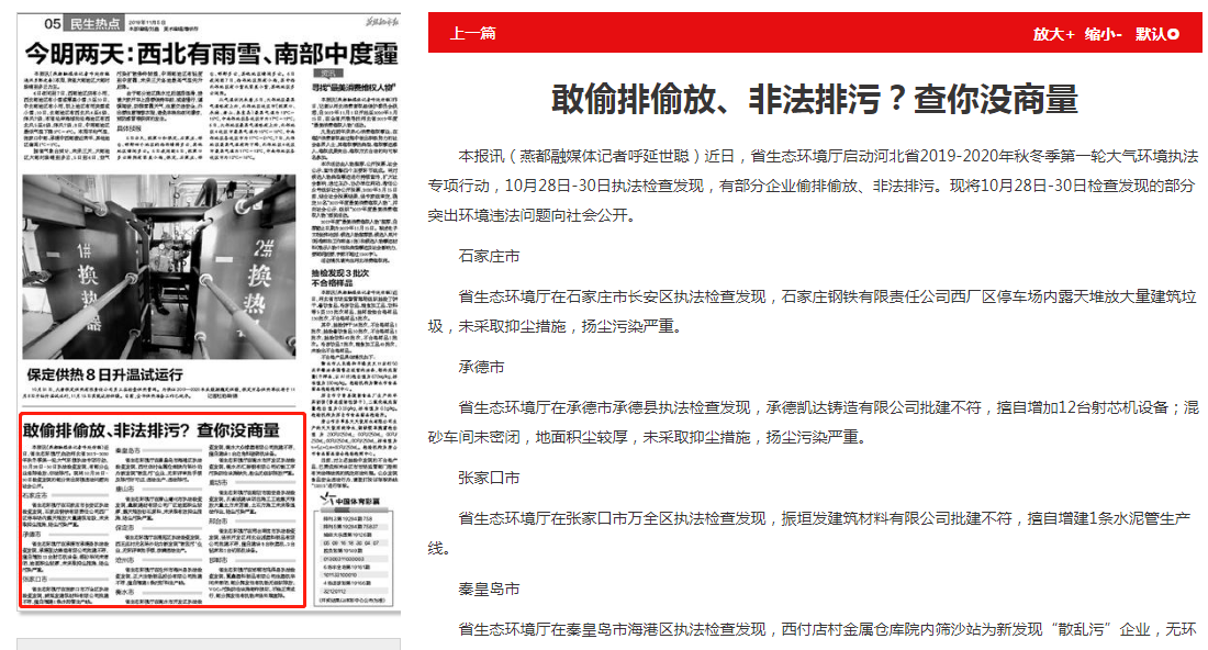 本报讯(燕都融媒体记者呼延世聪)近日,省91直播厅启动河北省2019-2020年秋冬季第一轮大气环境执法专项行动,10月28日-30日执法检查发现,有部分企业偷排偷放、非法排污。现将10月28日-30日检查发现的部分突出环境违法问题向社会公开。