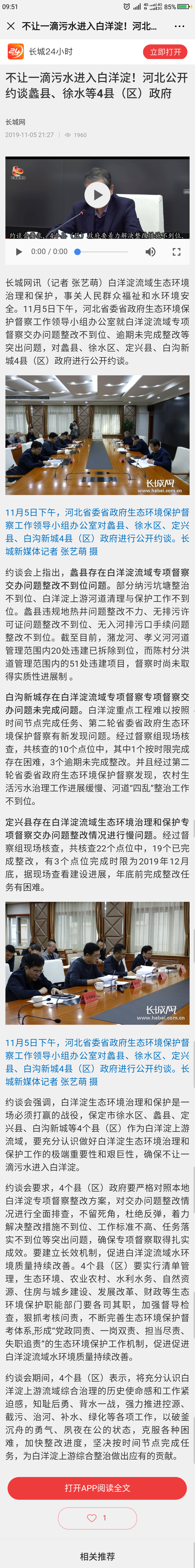 长城网:不让一滴污水进入白洋淀!河北公开约谈蠡县、徐水等4县(区)政府