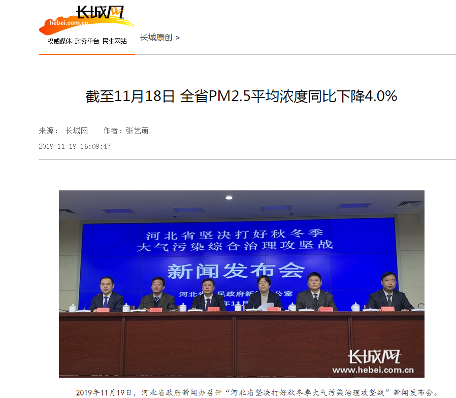 长城网:截至11月18日 全省PM2.5平均浓度同比下降4.0%