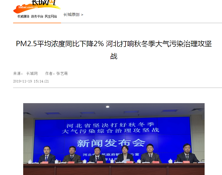 长城网 :PM2.5平均浓度同比下降2% 河北打响秋冬季大气污染防治攻坚战