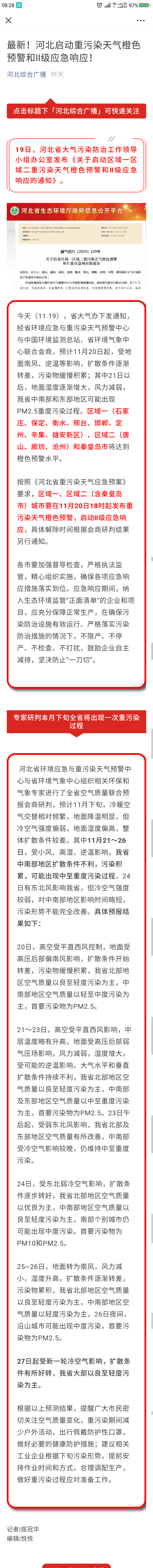 河北综合广播微信公众号:最新!河北启动重污染天气橙色预警和Ⅱ级应急响应!