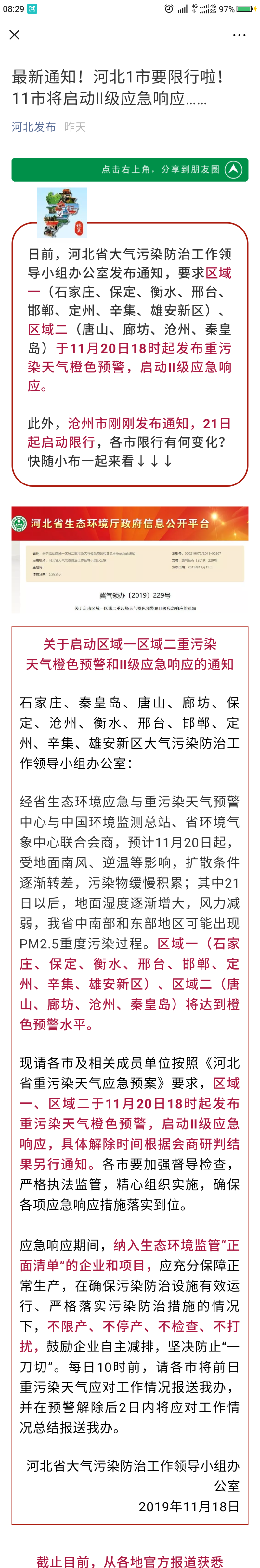 河北发布微信公众号:最新通知!河北1市要限行啦!11市将启动Ⅱ级应急响应……
