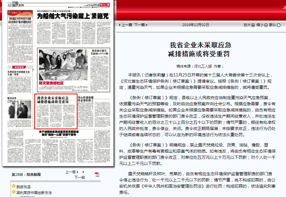 本报讯(记者张莉慧)在11月25日开幕的省十三届人大常委会第十三次会议上,《河北省91直播保护条例(修订草案)》提请审议。按照《条例(修订草案)》规定,遇重污染天气,如果企业未根据应急需要采取应急减排措施的,或将遭受重罚。