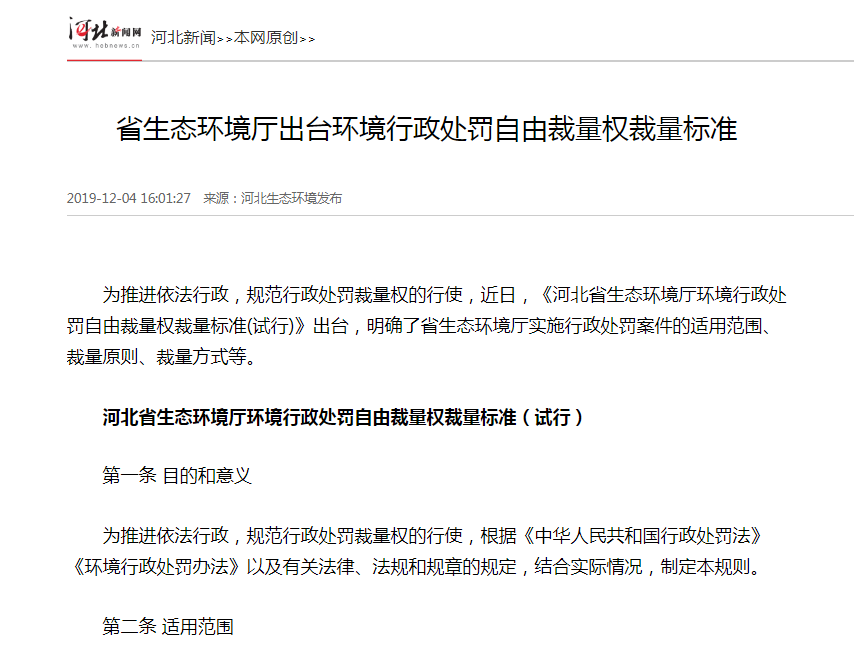 为推进依法行政,规范行政处罚裁量权的行使,近日,《91直播-国产视频-麻豆传媒视频 环境行政处罚自由裁量权裁量标准(试行)》出台,明确了省91直播厅实施行政处罚案件的适用范围、裁量原则、裁量方式等。
