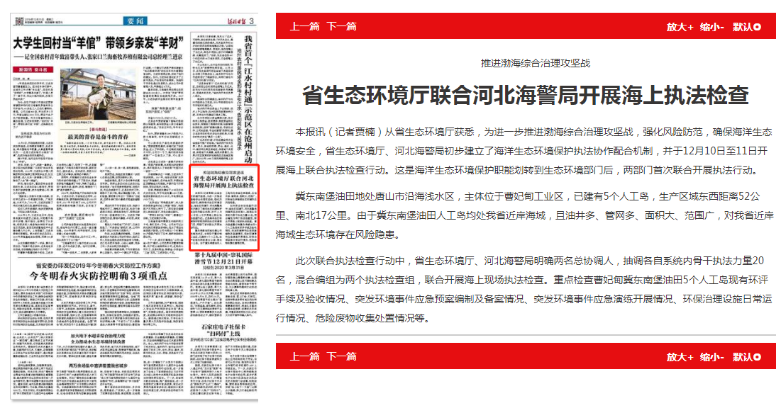 此次联合执法检查行动中,省91直播厅、河北海警局明确两名总协调人,抽调各自系统内骨干执法力量20名,混合编组为两个执法检查组,联合开展海上现场执法检查。重点检查曹妃甸冀东南堡油田5个人工岛现有环评手续及验收情况、突发环境事件应急预案编制及备案情况、突发环境事件应急演练开展情况、环保治理设施日常运行情况、危险废物收集处置情况等。