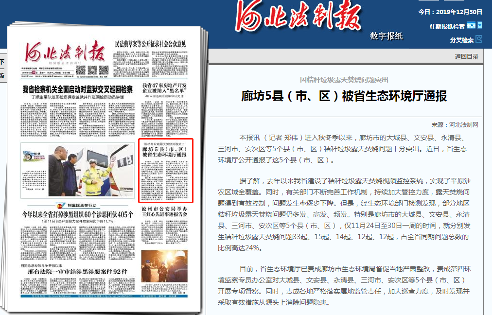 河北法制报:因秸秆垃圾露天焚烧问题突出 廊坊5县(市、区)被省91直播厅通报