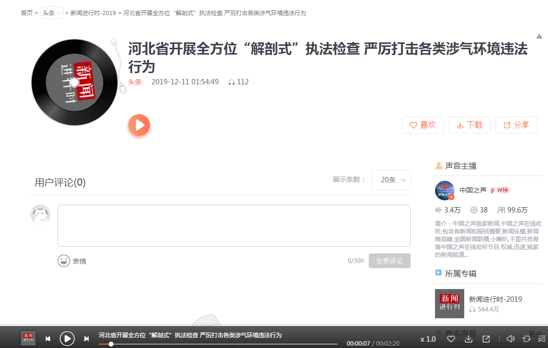 中国之声:河北省开展全方位“解剖式”执法检查 严厉打击各类涉气环境违法行为