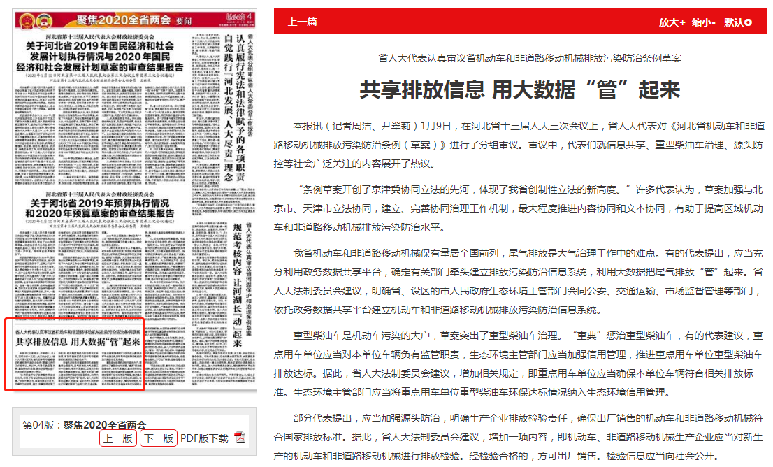 本报讯(记者周洁、尹翠莉)1月9日,在河北省十三届人大三次会议上,省人大代表对《河北省机动车和非道路移动机械排放污染防治条例(草案)》进行了分组审议。审议中,代表们就信息共享、重型柴油车治理、源头防控等社会广泛关注的内容展开了热议。
