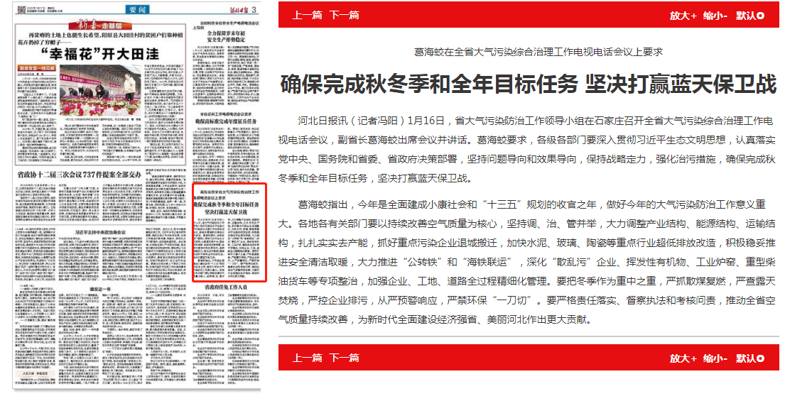 葛海蛟指出,今年是全面建成小康社会和“十三五”规划的收官之年,做好今年的大气污染防治工作意义重大。各地各有关部门要以持续改善空气质量为核心,坚持调、治、管并举,大力调整产业结构、能源结构、运输结构,扎扎实实去产能,抓好重点污染企业退城搬迁,加快水泥、玻璃、陶瓷等重点行业超低排放改造,积极稳妥推进安全清洁取暖,大力推进“公转铁”和“海铁联运”,深化“散乱污”企业、挥发性有机物、工业炉窑、重型柴油货车等专项整治,加强企业、工地、道路全过程精细化管理。要把冬季作为重中之重,严抓散煤复燃,严查露天焚烧,严控企业排污,从严预警响应,严禁环保“一刀切”。要严格责任落实、督察执法和考核问责,推动全省空气质量持续改善,为新时代全面建设经济强省、美丽河北作出更大贡献。