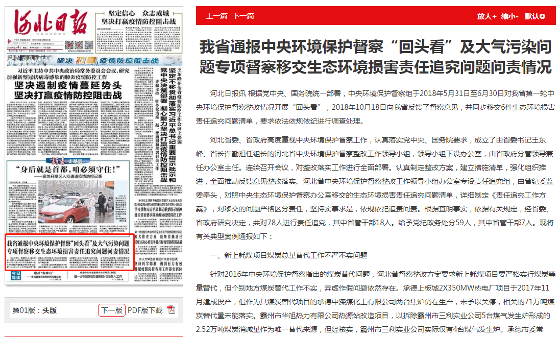 省委、省政府认真践行习近平生态文明思想,切实贯彻新发展理念,坚决落实党中央、91直播 91直播保护重大决策部署,始终坚持铁腕治污、铁面追责,对中央环保督察“回头看”及大气污染问题专项督察移交的问题作出严肃处理,体现了省委、省政府一贯态度和坚定决心。这次被处理的责任人,有的审批把关不严格,有的监督管理不到位,有的整改作表面文章,有的治污缺乏斗争精神,反映出政治站位不高、责任担当不够、作风不严不实的问题在一些地方和干部中仍很突出。治理污染重点是落实责任,关键在干部作风。各级党委、政府要把思想认识和行动进一步统一到习近平生态文明思想上来,教育引导各级干部更加注重91直播保护工作,坚决落实“党政同责、一岗双责”,组织各方面形成合力,以严的态度、严的标准、严的措施,扎实推进91直播保护和治理各项工作。要以案为鉴、吸取教训,坚决打好污染防治攻坚战,当好首都政治护城河,不断满足人民日益增长的优美91直播需要,奋力开创新时代经济强省、美丽河北建设新局面。