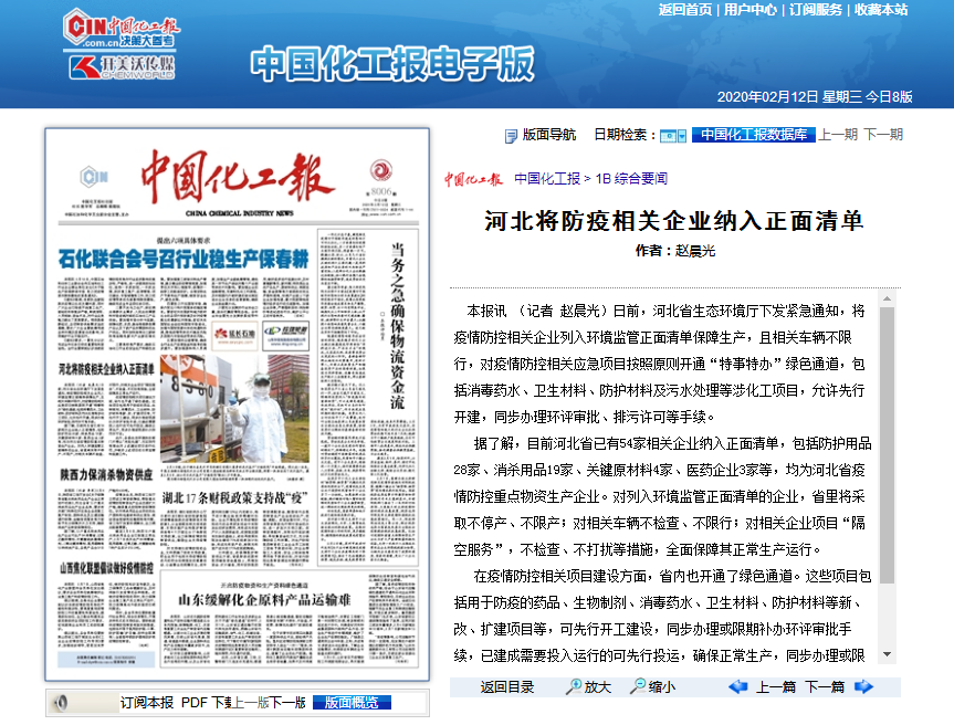 中化新网讯 日前,91直播-国产视频-麻豆传媒视频 下发紧急通知,将疫情防控相关企业列入环境监管正面清单保障生产,且相关车辆不限行,对疫情防控相关应急项目按照原则开通“特事特办”绿色通道,包括消毒药水、卫生材料、防护材料及污水处理等涉化工项目,允许先行开建,同步办理环评审批、排污许可等手续。