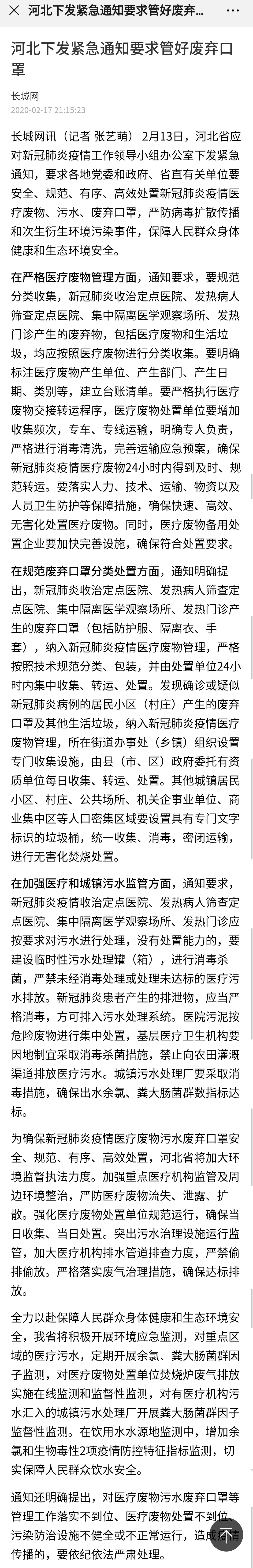 长城网:河北下发紧急通知要求管好废弃口罩